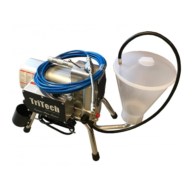 Tritech T3 er en presisjonbygd, solid og kompakt el. stempelpumpe som er ideell for mindre oppdrag. Elektronisk trykkontrollsystem gir et jevnt trykk uten pulseringer. PMDC motor som trekker mindre ampere. Unik materialpumpe bestående av meget få deler med hardforkrommet stempelstang i rustfritt stål. Ny teknologi med kun to pakninger, en øvre og en nedre pakning. Hus/manifold i én enhet og materialpumpe med ekstra stor materialpassasje. Ingen komponenter i pumpehuset/manifolden vil ruste da det er kun er benyttet komponenter i rustfritt stål og aluminium av høyeste (aereospace) kvalitet. Alle komponenter er produsert i USA, og det gis livstidsgaranti på motor og gear.