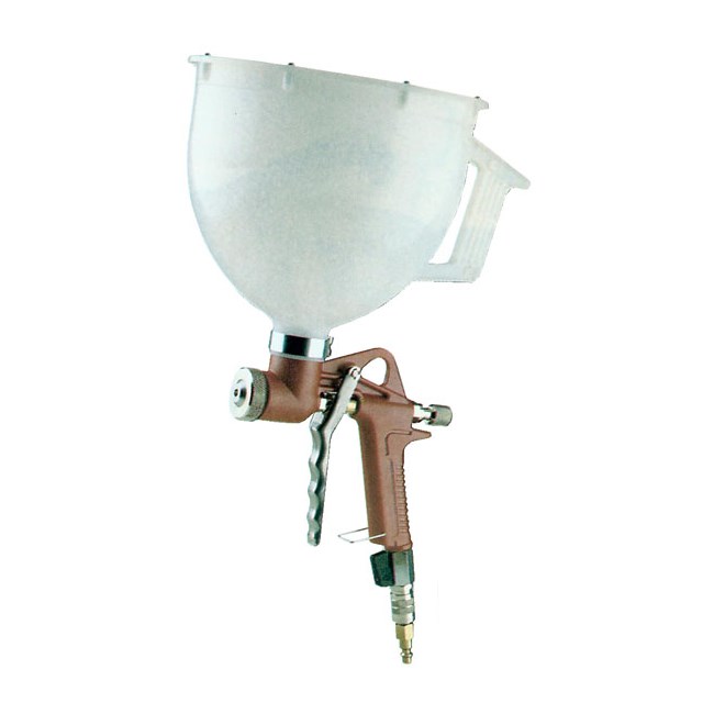 Koppsprøyte for sprøyting av pigmenterte materialer, f eks farge som inneholder knust marmor. Dyse og nål i rustfritt stål. 5 l overkopp med håndtak.