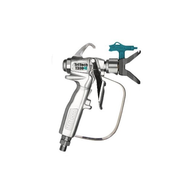 TriTech T380 er en lett og kompakt kvalitetssprøytepistol med 2-fingersavtrekk og innstikkfilter i skjeftet. Kan også leveres med 4-fingeravtrekk. Avtrekket er lett og behagelig. Nålen er ferdig kalibrert fra fabrikk og trenger aldri etterjusteres. Godkjent for arbeidstrykk inntil 260 bar. Leveres standard med 1/4" NPS(M) sviveltilkobling. Bytte av innstikkfilter gjøres ved å skru av håndtaket.