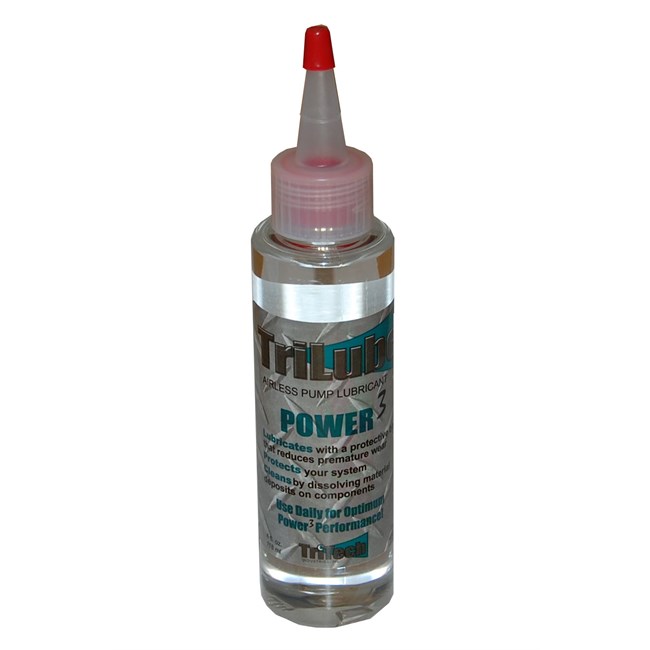 Olje for smøring av materialpumpen. Sørg alltid for at det er olje i smørekoppen på TriTech pumpen. Dette reduserer slitasjen på stempel og pakning som forårsakes av fasttørket maling. Flaske á 0,12 l.