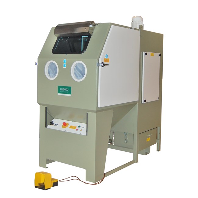 CLEMCO Pulsar II Compact blåsekabinett har alle de detaljer et moderne blåsekabinett skal ha. Kabinettet har trykkluftrenset patronfilter og avsugsvifte, "Clemco Reclaim System" for gjenvinning og rensing av blåsemiddelet, god tilgjenglighet ved inn- og utlasting, stort og godt opplyst blåserom, høy kvalitet på slitedeler og utførelse, god lyddemping mm. Kabinettets styrepanel sitter lett tilgjenglig i front av kabinettet. Pulsar Compact er spesielt godt egnet for blåsing med glasskuler og aluminiumoxid der disse må opprettholde en høy grad av renhet, men kan også med fordel benyttes med annen type blåsemiddel, som f eks plastmedia, nøtteskall eller finkornet stålsand mm. Stort tilbehørprogram (se lengre ned) som dreieskive, innlastingsbord med skinner og vogn og dreieskive, innvendig gummiering, luker/sluser, roterende blåsetrommel montert i sidedøren mm.